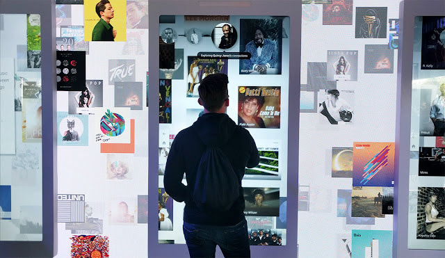 Not far from the dancing paint robot, I/O’s Google Play Music room brought Google Search and Google Play Music together in perfect harmony. On the Play Connections Wall, you could explore connections between different artists, albums, and songs, powered by the Knowledge Graph. Nearby, a display with 3,000+ earphone jacks let you listen to songs from Google Play Music’s many different playlists, complete with LED lights that matched the mood of each song. The audio cables powering the display added up to 18,000 feet (3.4 miles)—almost as tall as Mount Kilimanjaro.